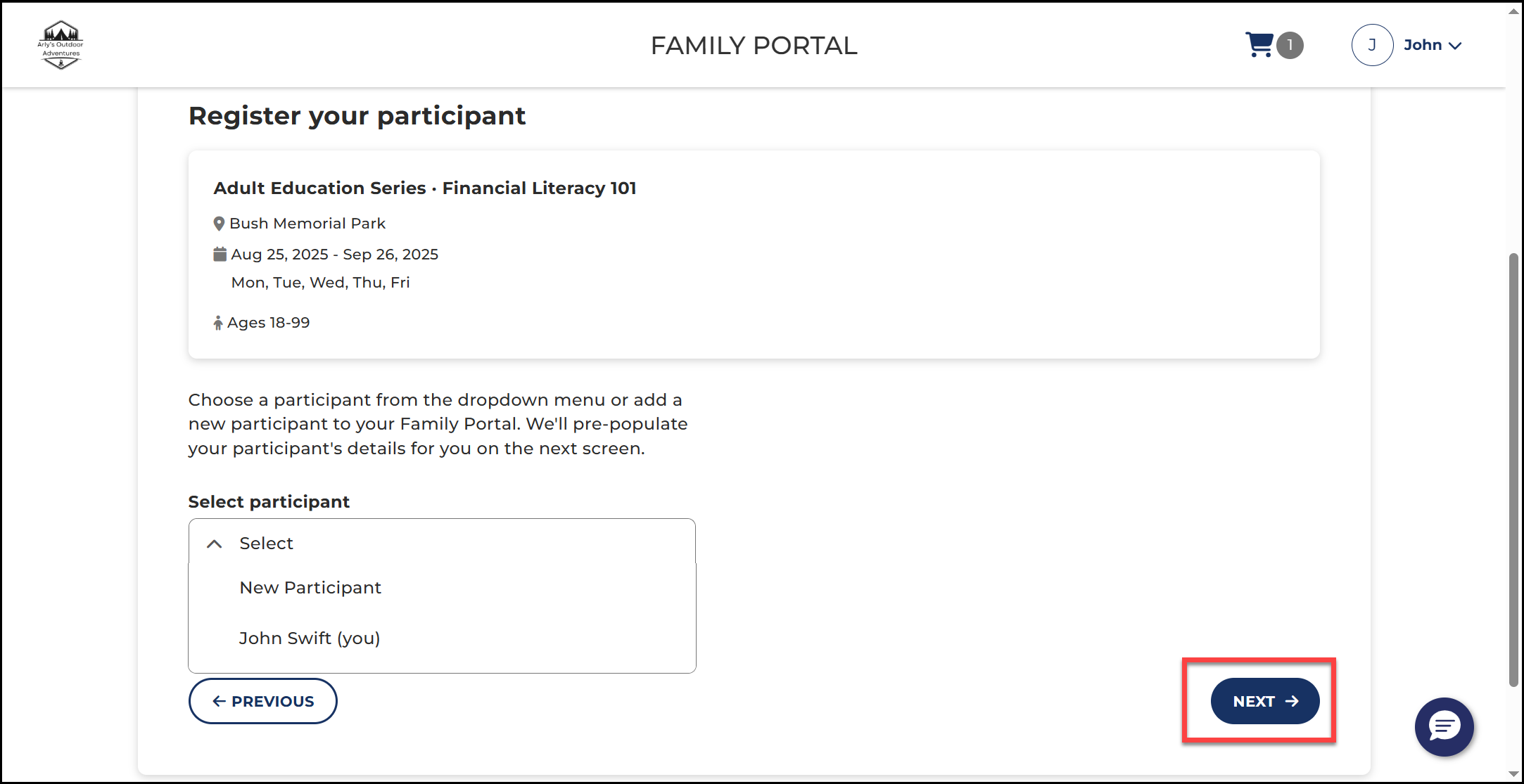 1. Visit the Family Portal using the specific web address provided to you by the program.